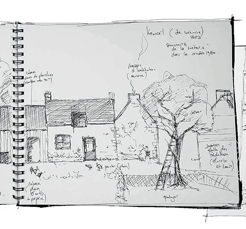 À pas 30 ans, par besoin de concret, de “matière”, je deviens paysanne-boulangère. “Les pieds dans la Terre, les mains dans la pâte et la tête dans les nuages”, comme je l’écrivais alors. Je peignais, j'écrivais déjà intensivement avec une idée fixe : faire naître mes propres ouvrages de papier.